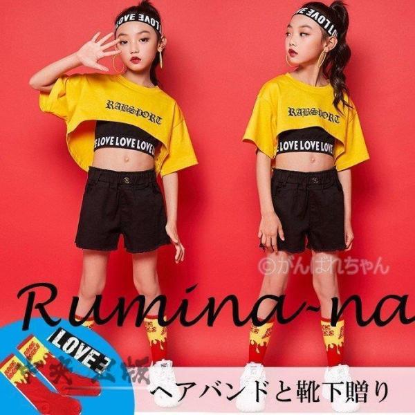 ヘアバンドと靴下贈り ダンス 半袖 Tシャツ キッズ ダンス衣装 ヒップホップ ジャズダンス チア チアガール 女の子 ステージ衣装 演出服 応援団 上下セット Y6 Stage451 がんばれちゃん 通販 Yahoo ショッピング